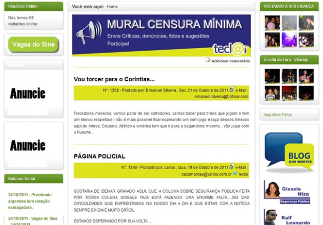 Descrição: portal de comunicação e entreterimento de Montes Claros. O site é voltado além das notícias regionais, de opinião sem censura, blogs, notícias globais como um todo, fotos de eventos e muito mais…